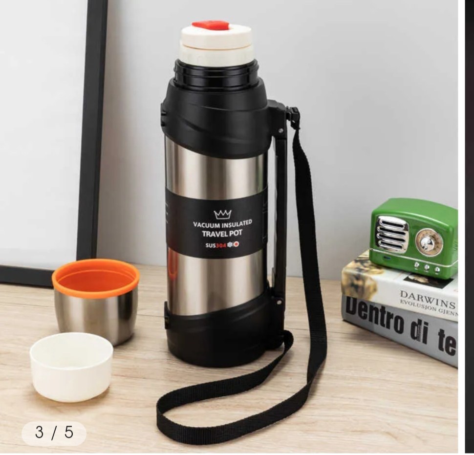 فلاسک اسپورت ، حرفه ای ، سفری 2/5 لیتری زمان نگهداری دمای مایعات 24 ساعت جنس بدنه استیل دو لایه Double wall درب دو کاره پیچی و اهرمی دارای دو لیوان داخلی پلاستیکی و لیوان درب رویی استیل با کاور پلاستیکی دسته قابل حمل