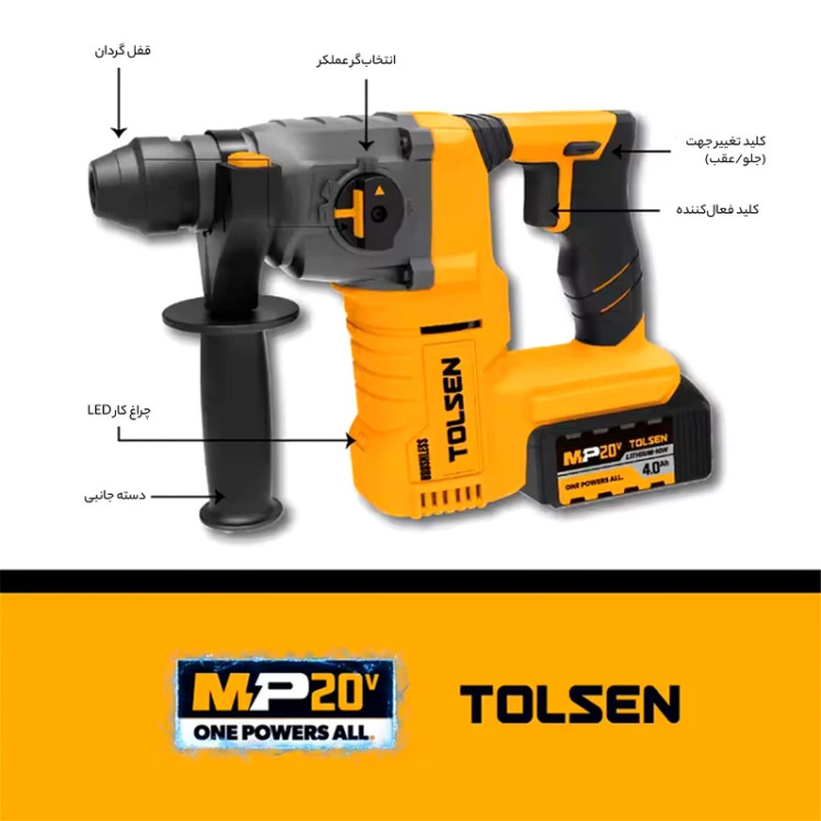 دریل بتن کن شارژی براشلس 20 ولت صنعتی تولسن 87272 (بدون باتری و شارژر)