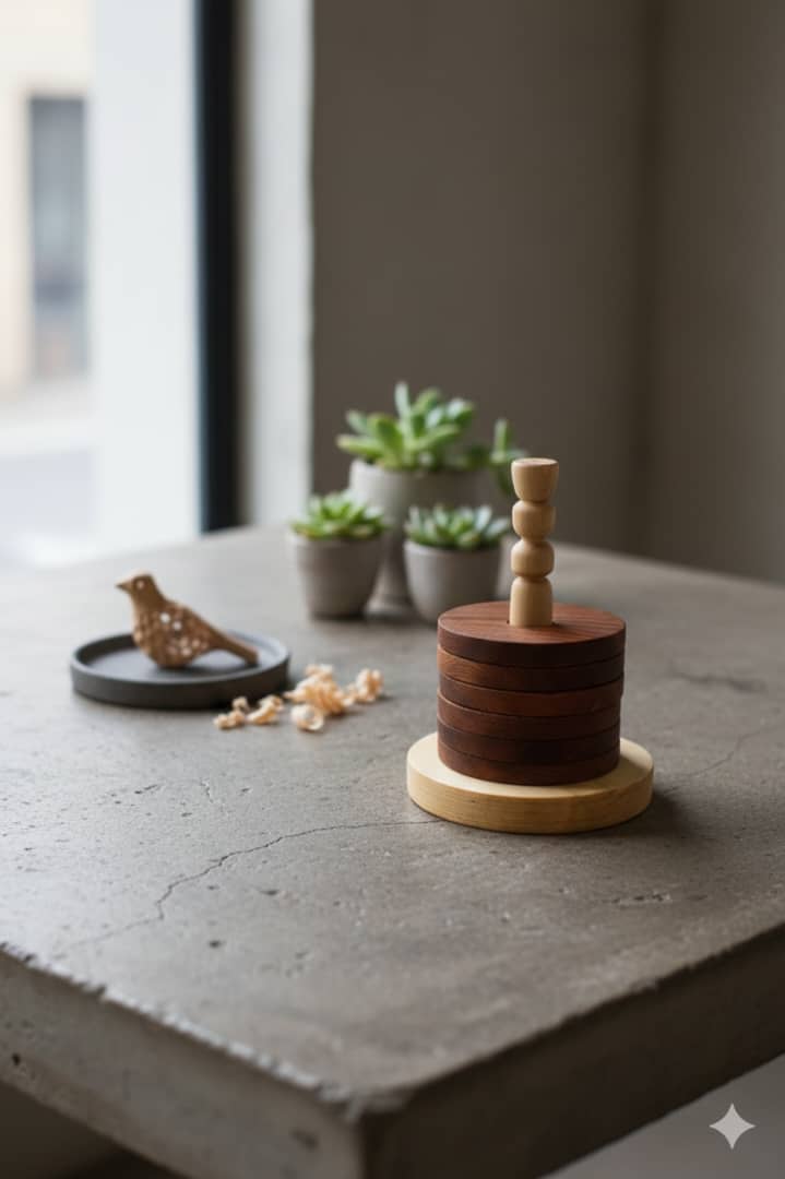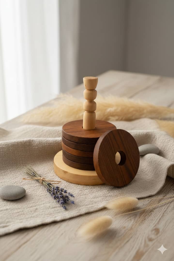 زیر لیوانی مدل ماژولار برج چوبی
